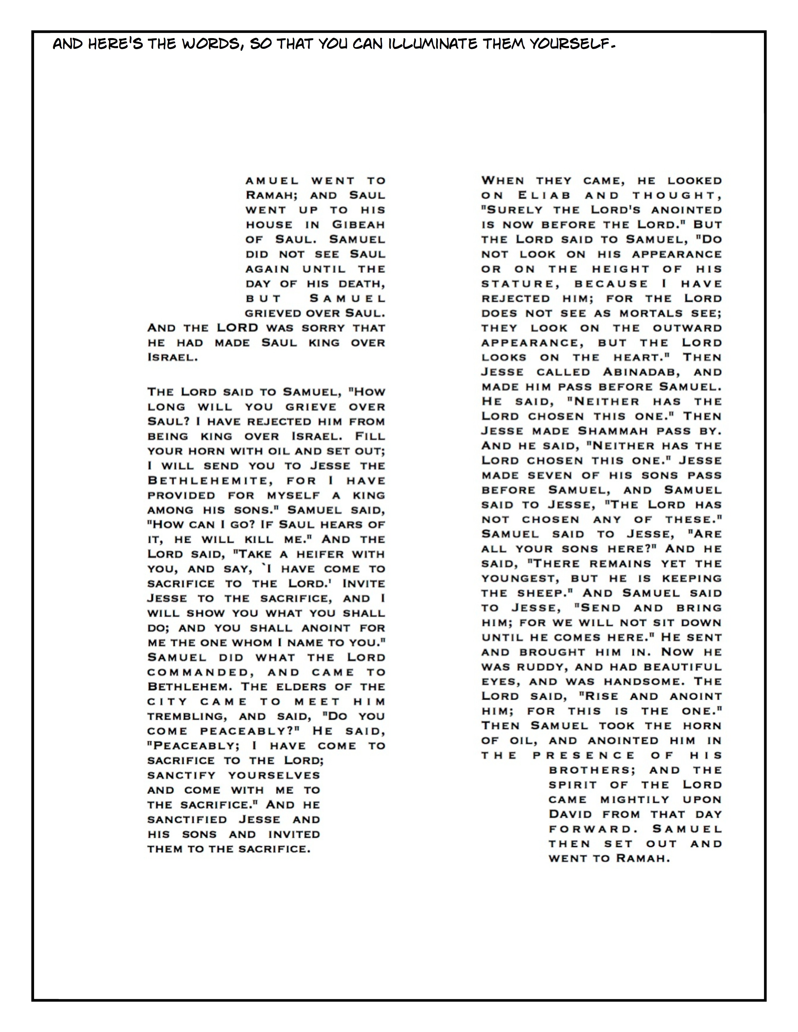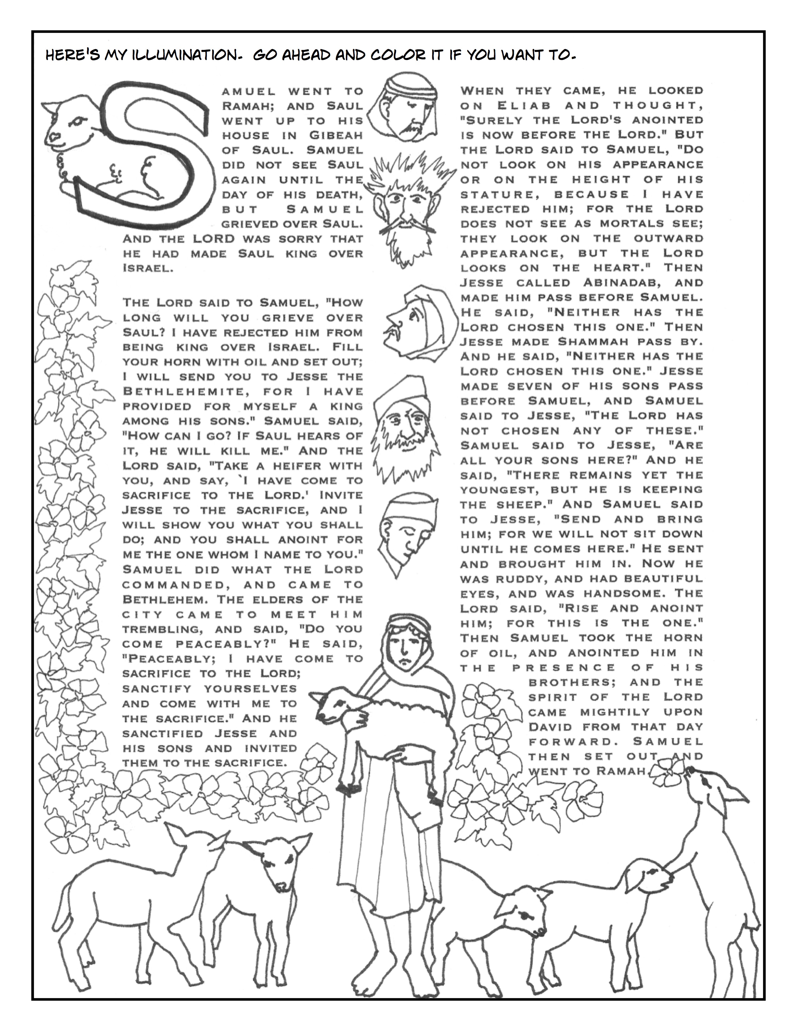 Here’s an illuminated text workbook to go with this Sunday’s reading from 1 Samuel. If you want a printable version, click here. Enjoy!