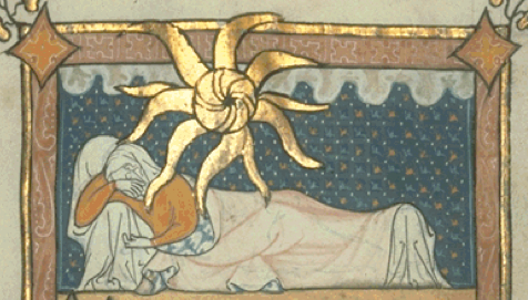 There’s a lovely illumination in the Rothschild Canticles that shows a nun, meditating upon her bed. The Godhead appears above her in the shape of a sun, and one ray of that sun is reaching under the sheets. It’s an image that reflects a late medieval spirituality that sought mystical union with God through erotic imagery. I like it very much, because I think that it has something to teach us. That teaching can be simplified to this – Jesus is with us under the covers. He’s engaged in our intimacy, not absent from it.