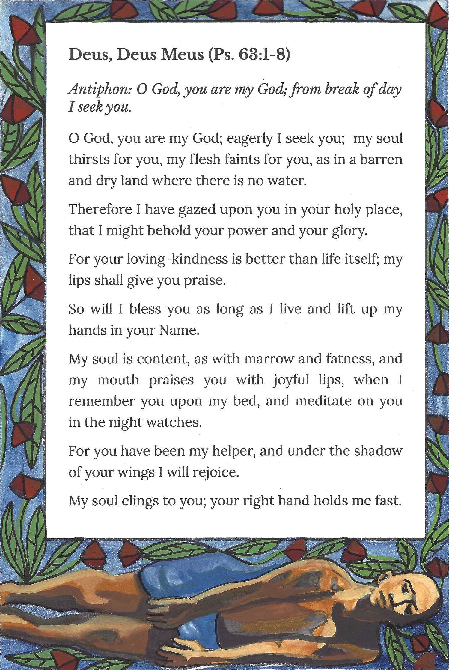 We can see this sense of praise at work in Psalm 63, called, in the tradition Deus, Deus Meus which means “God, my God.” Here’s the text of the psalm: